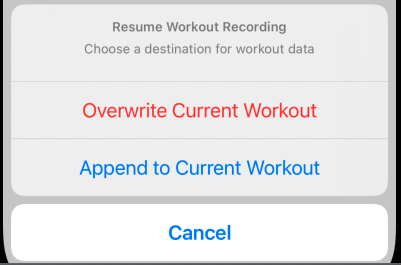 ActionSheet(title: Text("Resume Workout Recording"),
