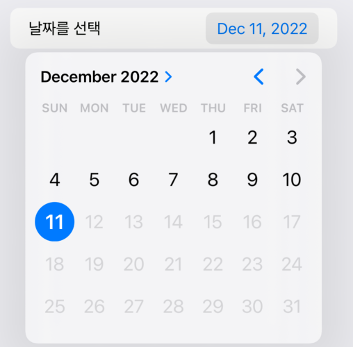 - 속성에 displayedComponents: .date 를 지정하면 달력 팝업이 표출된다.