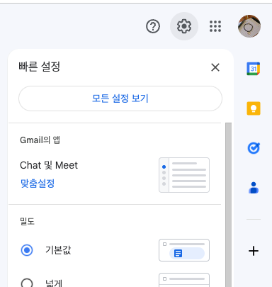 2. Gmail 화면에서 오른쪽 상단의 톱니바퀴 모양의 버튼을 클릭한다.