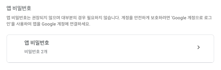 4. 제일 밑에 [ 앱 비밀번호 ] 클릭한다. 메뉴를 클릭한다.