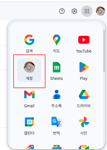 1. 구글 계정 옆의 바둑판 모양의 버튼을 클릭한다.