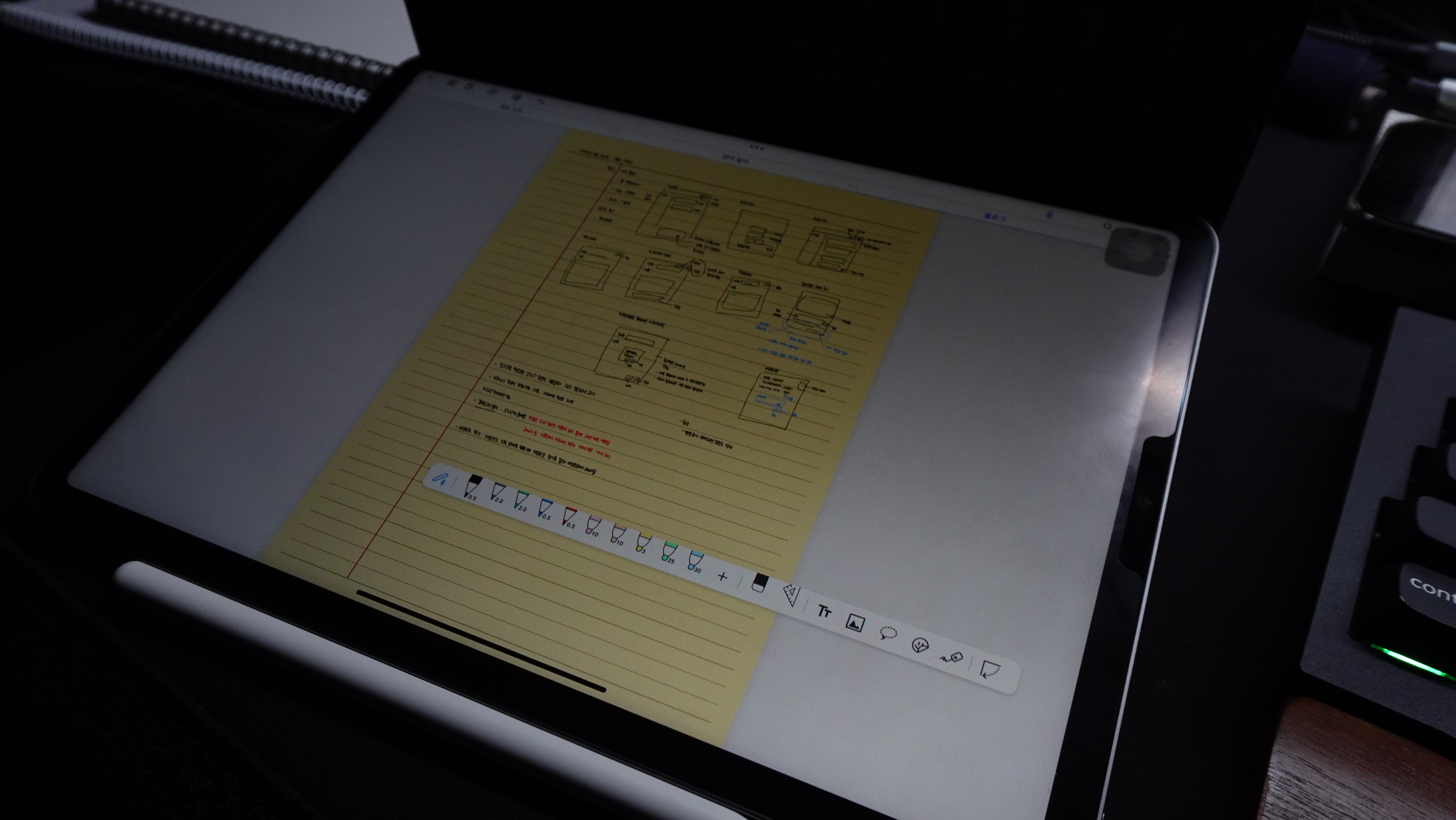 아이패드로 어떤 화면을 그릴지 생각나는 대로 그렸다. 화면마다 필요한 기능 등을 메모해 적었다. 기획을 할 때 피그마나 제플린을 이용해 화면작업을 많이 한다. 생각나는대로 정리하려고 아이패드로 그렸다. 나중에 시간이 되면 피그마에 옮겨야겠다.
